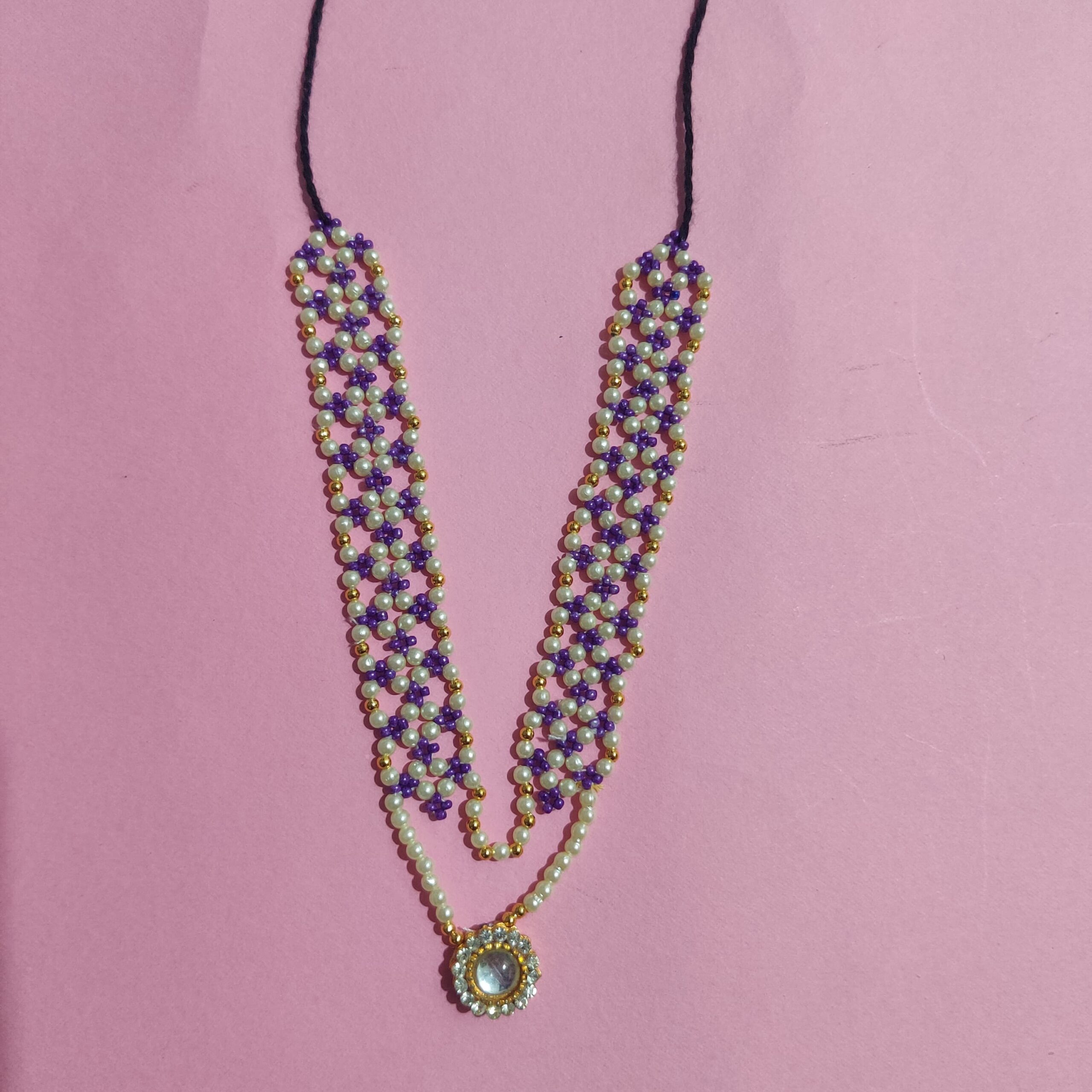 This mala set is a symbol of faith and spiritual significance. The delicate craftsmanship and attention to detail highlight its connection to traditional rituals and cultural significance.