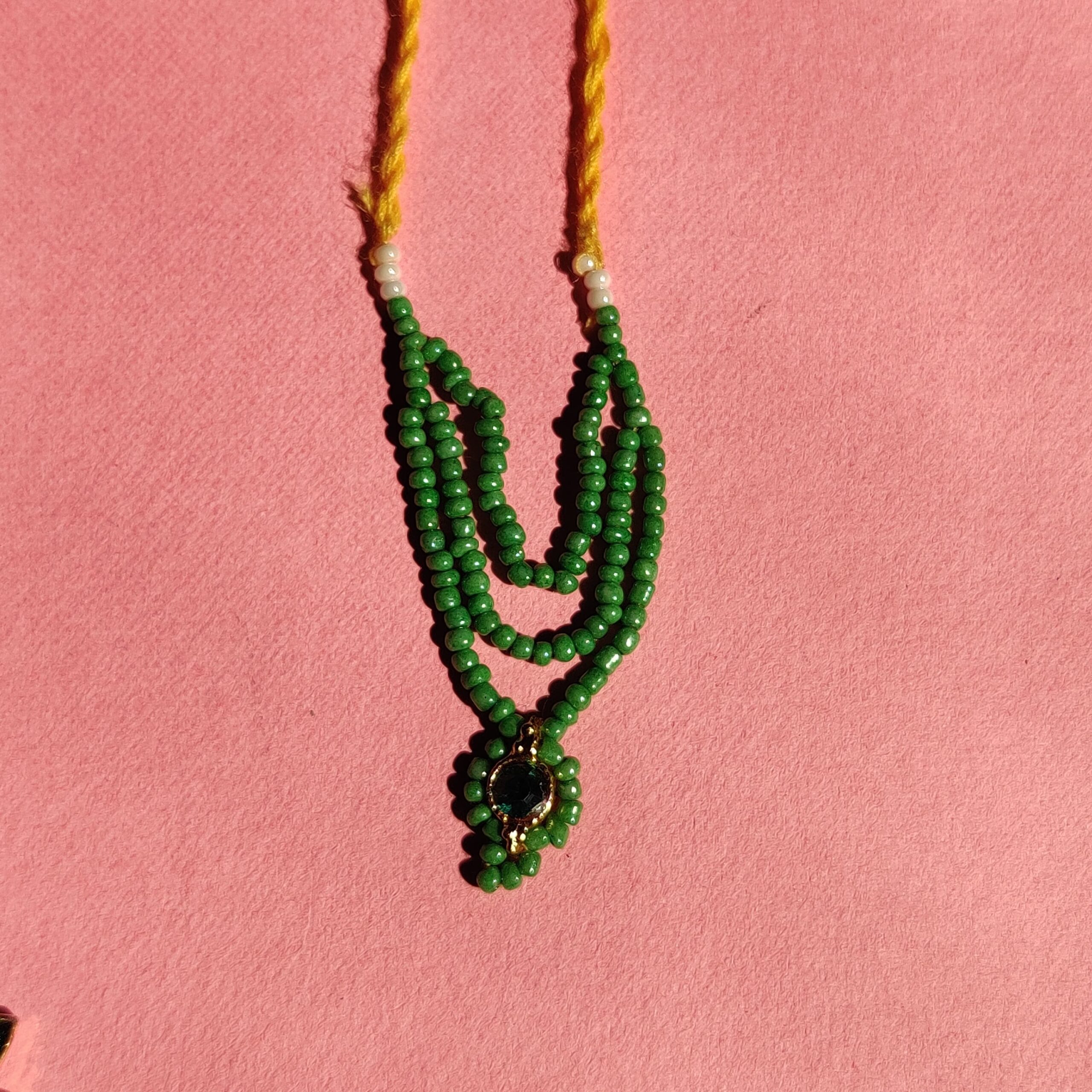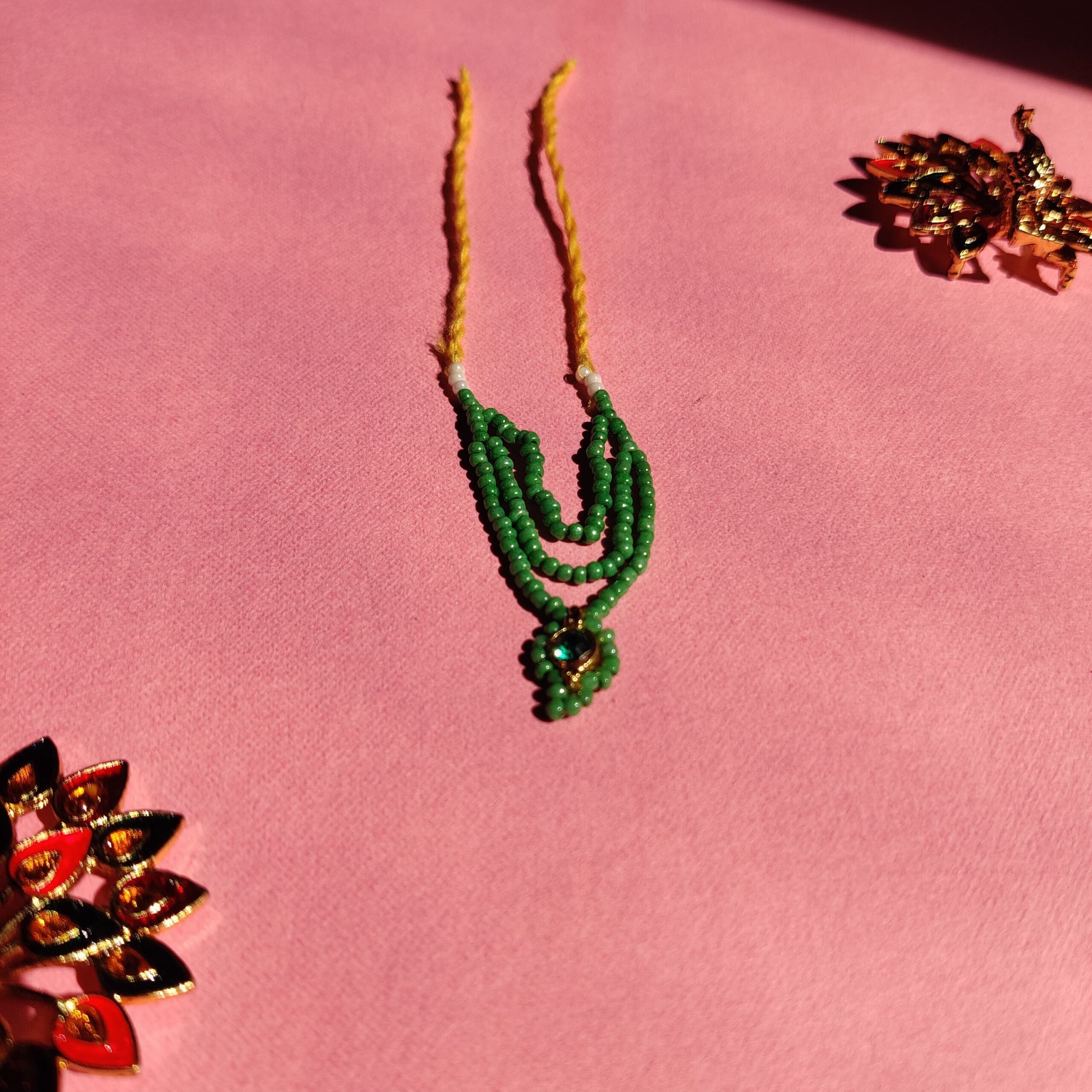 Handmade Green Moti & Green Stone Mala for Laddu Gopal