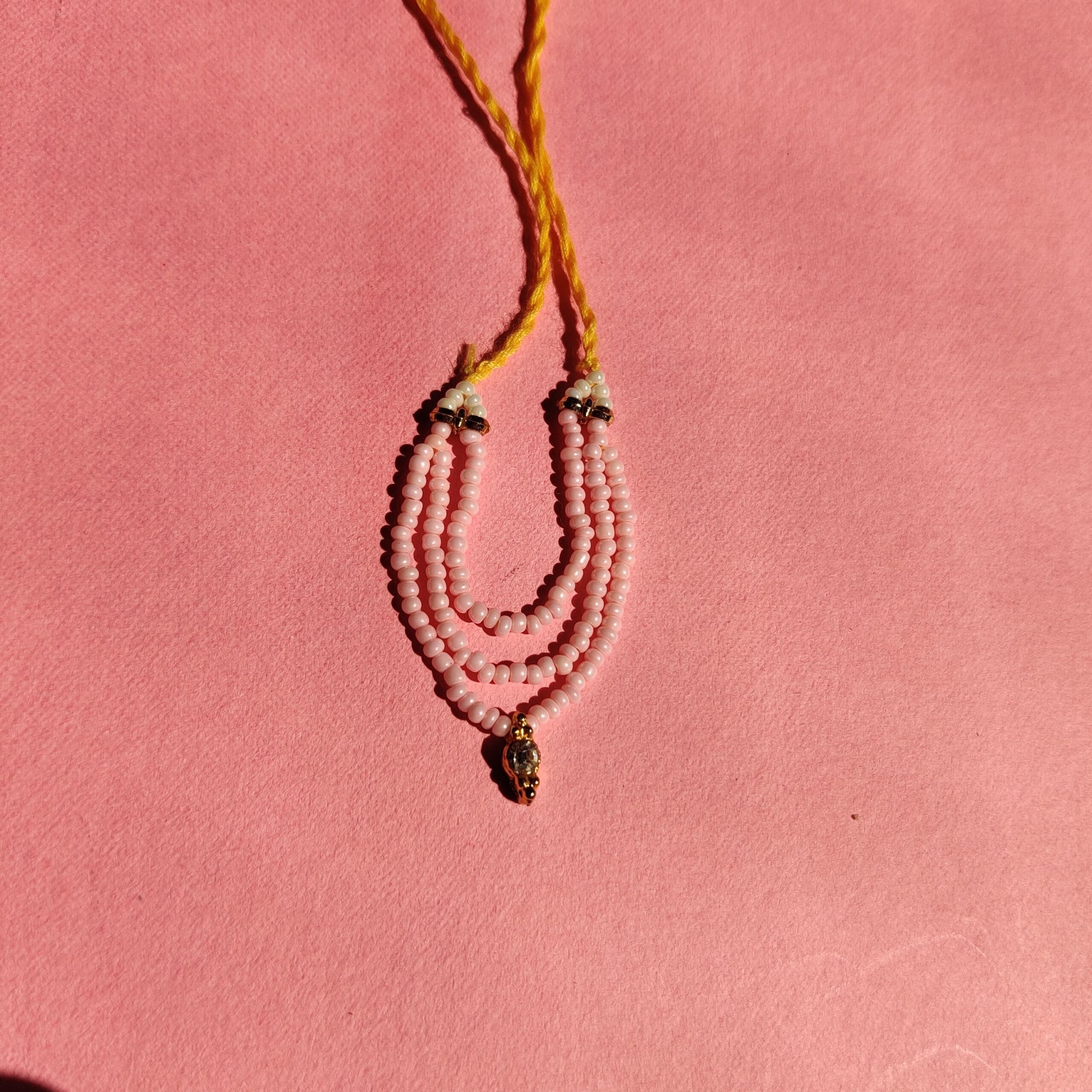 Handmade Light Pink Moti & White Stone Mala for Laddu Gopal