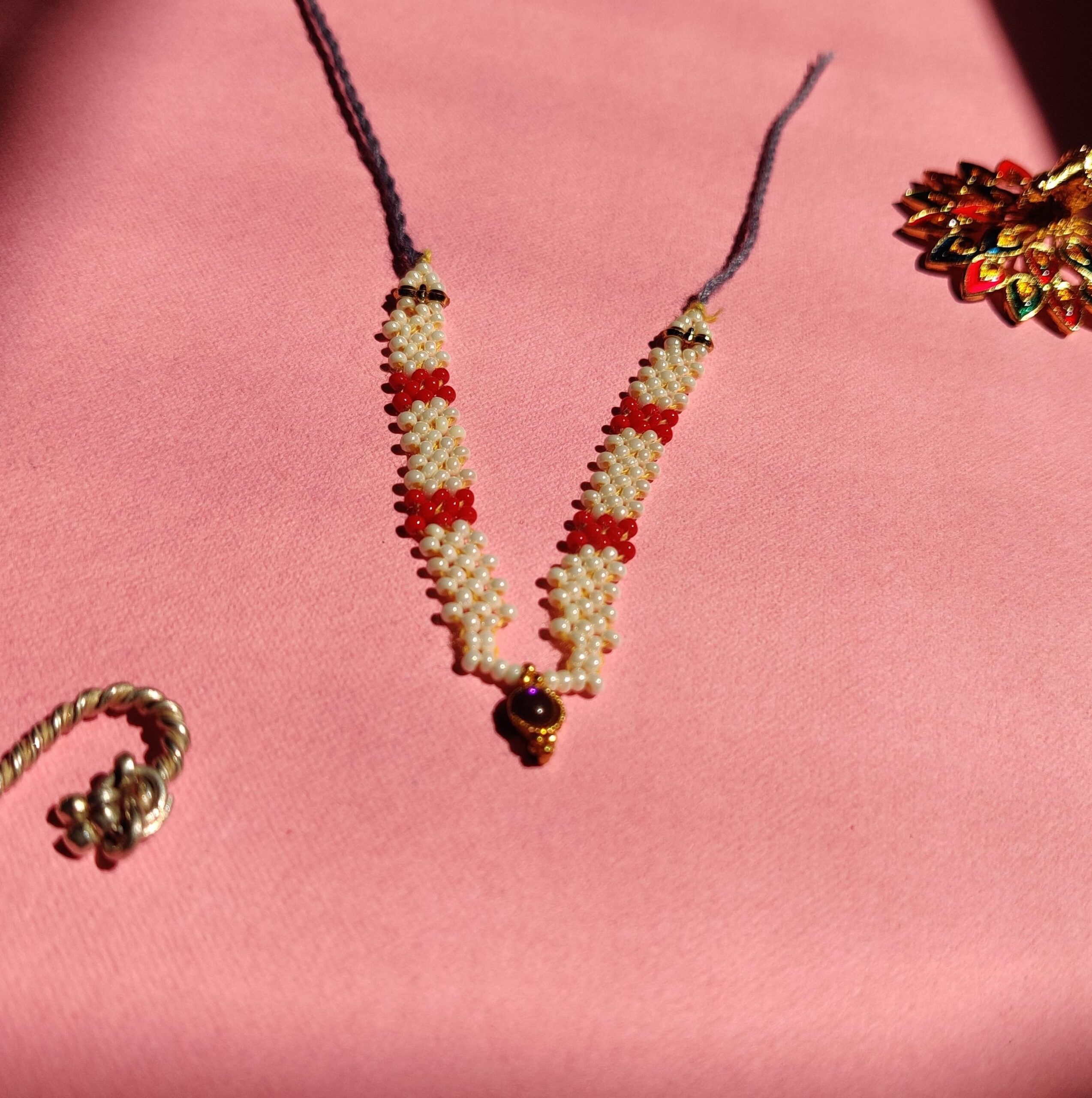 Handmade White & Red Kanth Mala for Laddu GopalHandmade White & Red Kanth Mala for Laddu Gopal