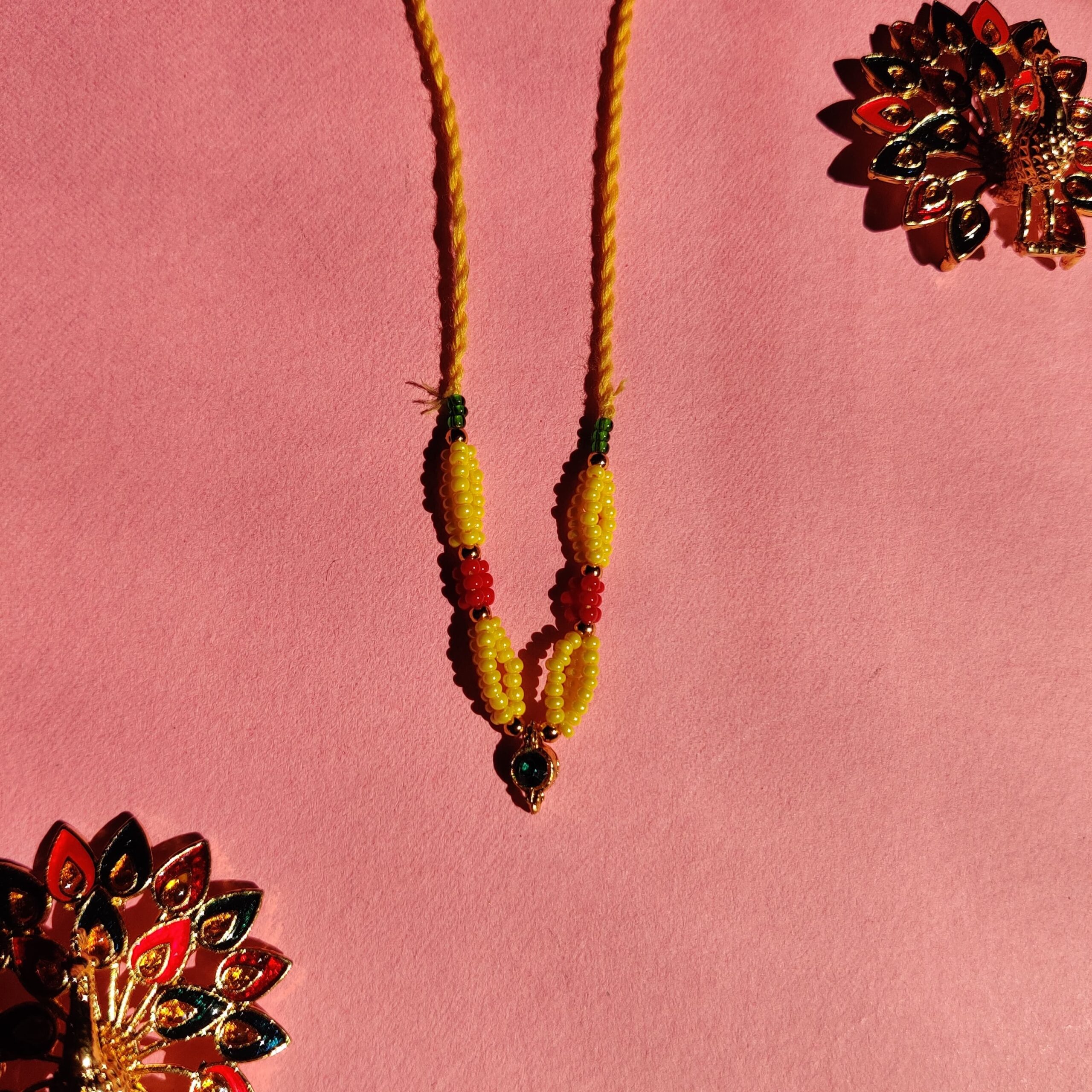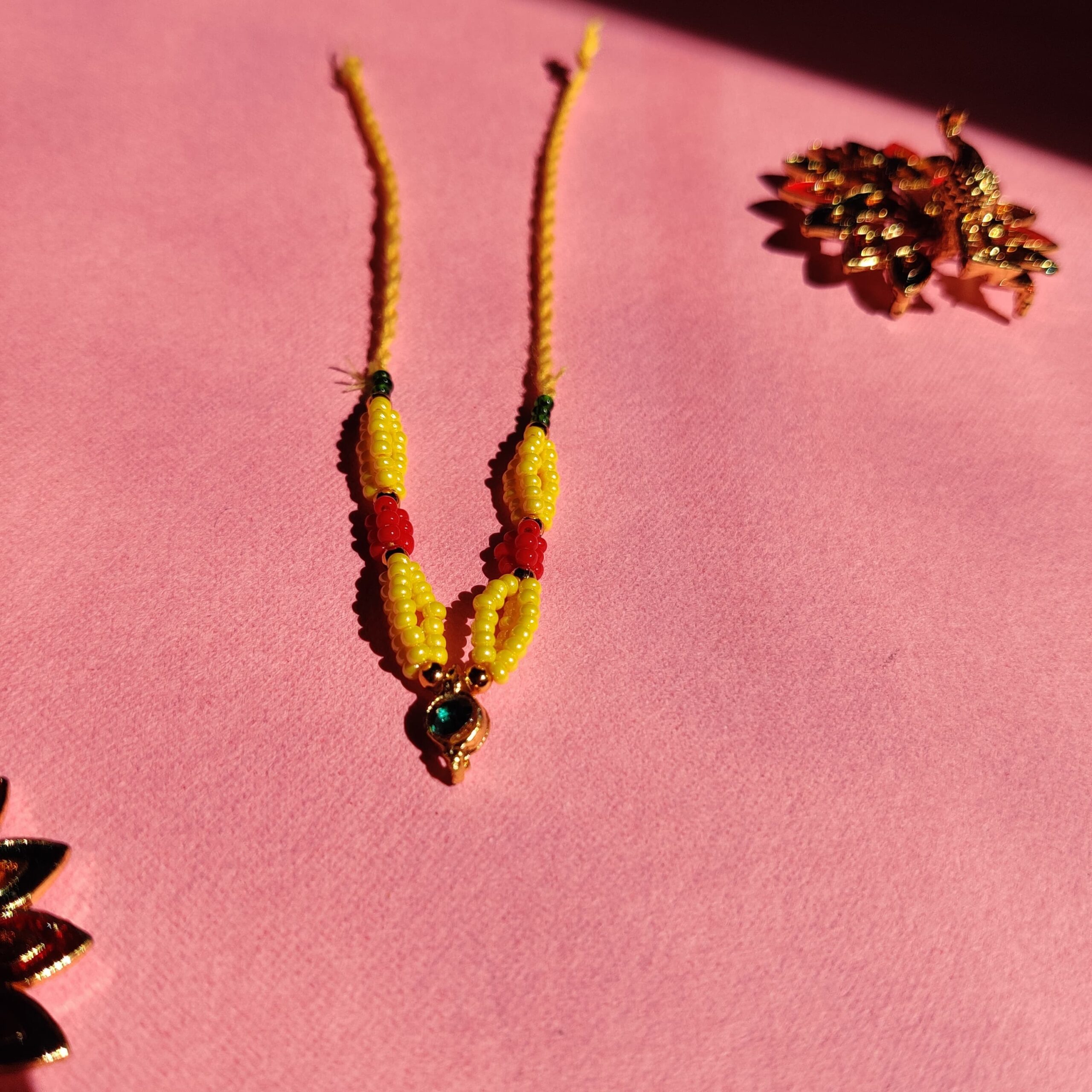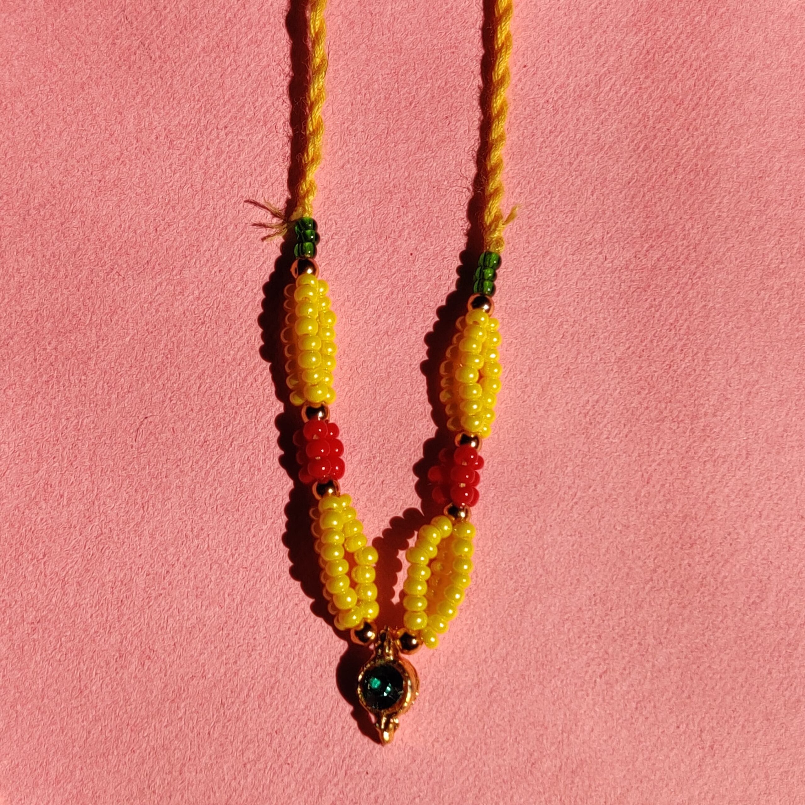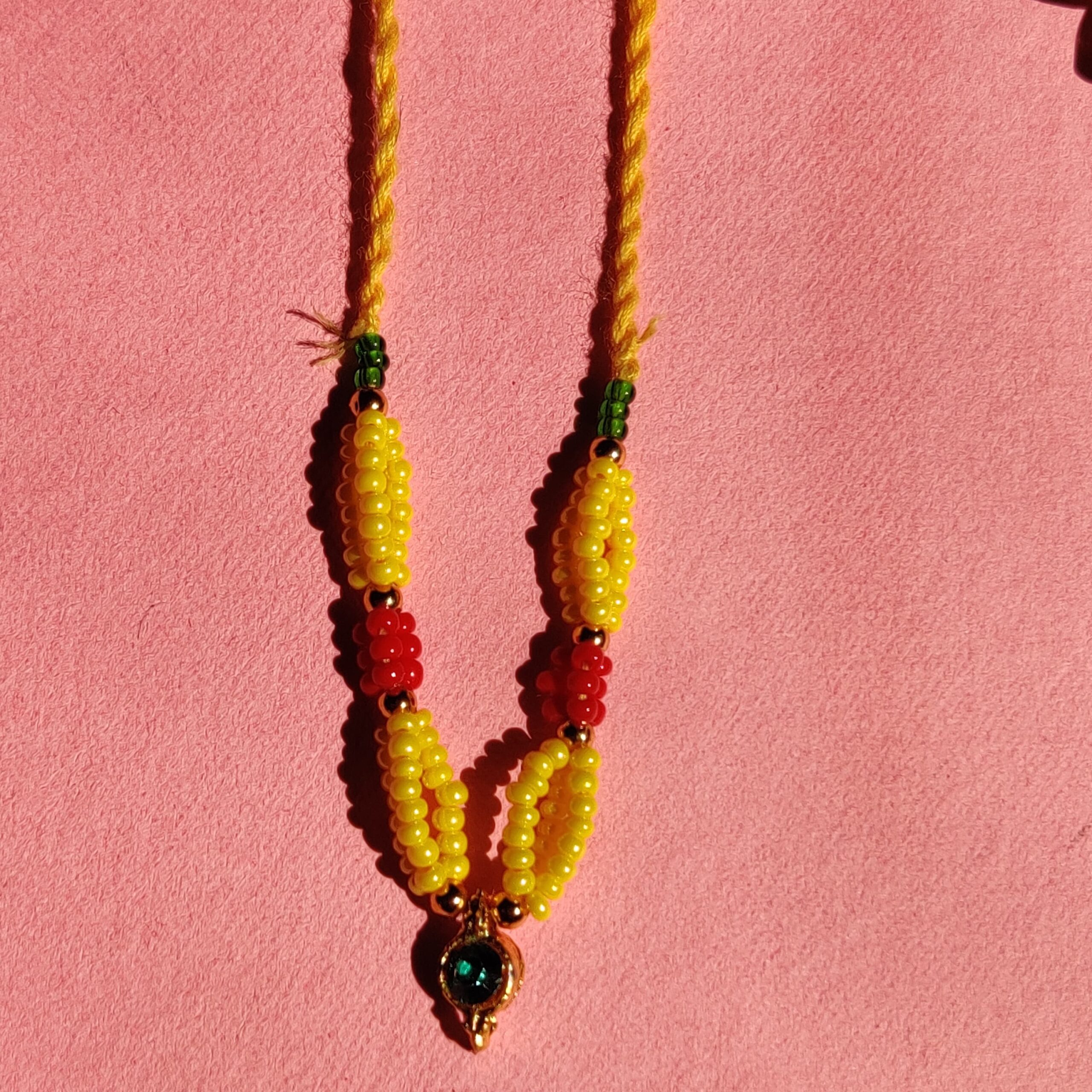 Handmade Yellow & Red Moti Mala for Laddu Gopal